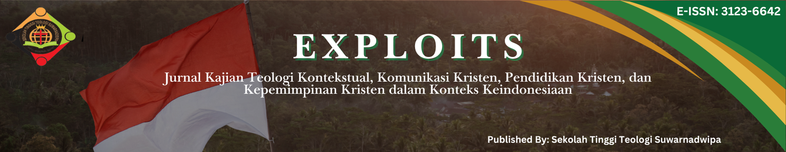 EXPLOITS : Jurnal Kajian Teologi Kontekstual, Komunikasi Kristen, Pendidikan Kristen, dan Kepemimpinan Kristen dalam Konteks Keindonesiaan. It highlights themes such as potential, leadership, opportunity, integrity, and talents, aiming to integrate faith, knowledge, culture, and ministry. The journal is committed to producing relevant, contextual, and transformative contributions for the church, society, and nation. Published every September and March.